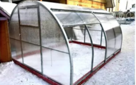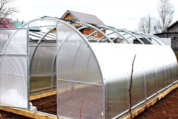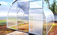 Поликарбонат - лежит в одной плоскости на дугах и перемычках (важно для долговечности укрывного материала)